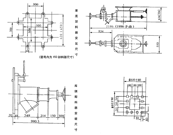 | 名 稱 | 庫側(cè)卸料器 | 庫側(cè)卸料器 | 氣動(dòng)單嘴庫底 | 手動(dòng)單嘴庫底 | 氣動(dòng)雙嘴庫底 |